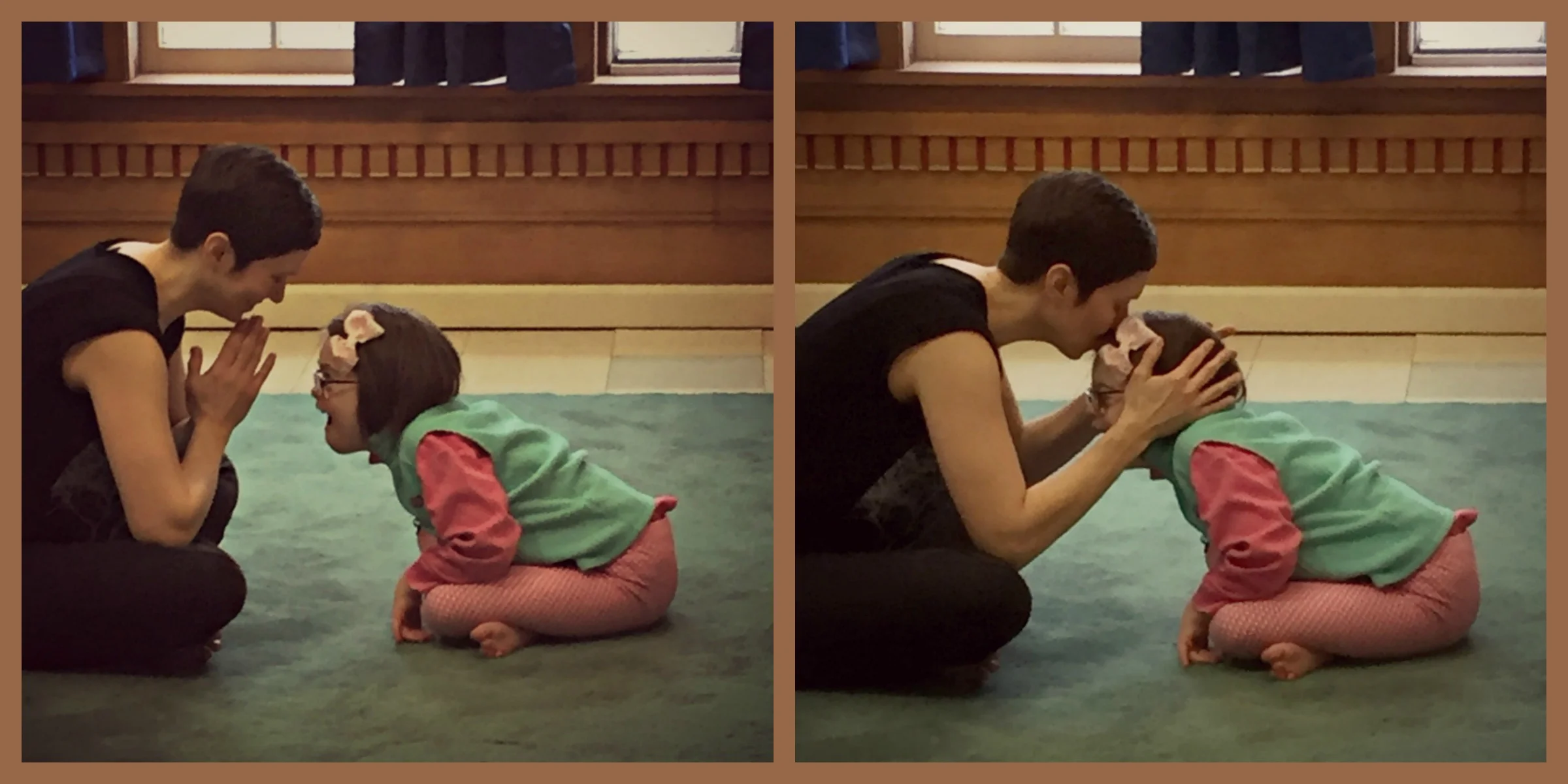 Miss Molly is one of my treasured Yoga for the Special Child® students. Her wonderful mom captured this moment during her last class. Mom is so sneaky, she snagged these photos through the window in our classroom door and texted them to me later that day. I am so happy she shared these photos with us.